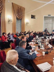 3 октября в Доме Союзов состоялось еще одно мероприятие - «круглый стол» на тему «Законодательное обеспечение переходных периодов при становлении Российского парламентаризма». Центральной темой обсуждения стало осмысление трагических событий сентября-октября 1993 года в Москве, а также их влияние на современное состояние Российского государства. К сожалению, преступления октября 1993 года до сих пор не получили официальной правовой и государственной оценки, а в публичном пространстве зачастую насаждается антисоветская трактовка тех событий. «Мы все хорошо понимаем, кто выступает спонсором этих информационных атак, - рассказывает Николай Харитонов, - очевидно, сегодняшнее давление Запада на Россию — это не просто эпизод современной политики, а очередная попытка взять реванш за те исторические поражения, которые понес колониальный капиталистический мир в XX веке. Нам до сих пор не могут простить величайших событий: Великой Октябрьской социалистической революции, создания первого в истории социалистического государства, бросившего вызов миру эксплуатации и нашей Великой Победы в 1945 году, которая сокрушила фашизм - порождение капиталистического мира».