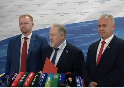 В Государственной Думе перед пленарным заседанием состоялся пресс-подход группы депутатов фракции КПРФ с информацией по текущей депутатской деятельности.