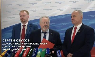 В Государственной Думе перед пленарным заседанием состоялся пресс-подход группы депутатов фракции КПРФ с информацией по текущей депутатской деятельности.
