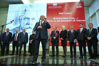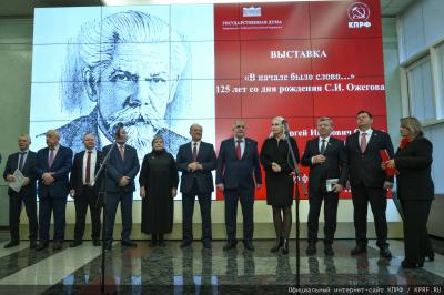 21 октября в Госдуме состоялась церемония открытия выставки, посвященной 125-летию со Дня рождения выдающегося советского лингвиста, лексикографа, доктора филологических наук, профессора, автора «Толкового словаря русского языка» и одного из создателей современной культуры речи С.И. Ожегова. Организатор – фракция КПРФ в Госдуме.