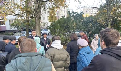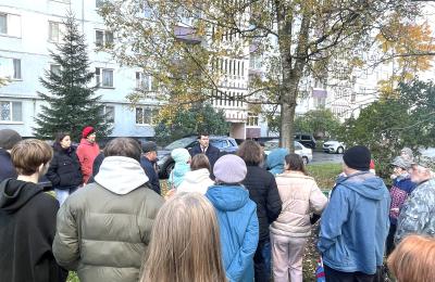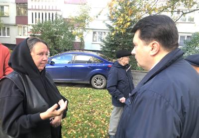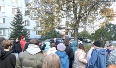 Встреча с жителями Великого Новгорода состоялась во дворе многоквартирного дома на проспекте Александра Корсунова.