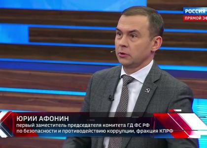 Первый заместитель Председателя ЦК КПРФ Ю. В. Афонин выступил в программе «60 минут» на телеканале «Россия-1».