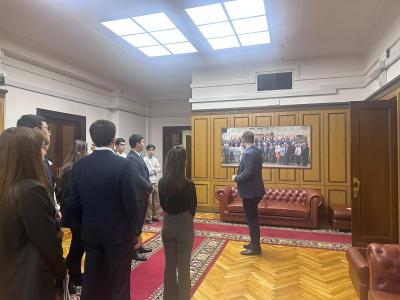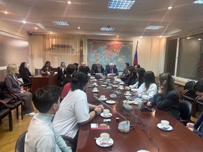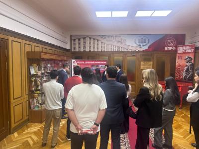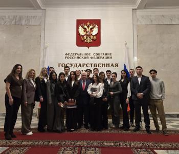 Перед началом беседы студенты — обучающиеся 3 курса группы БИ(б) 23/1 — побывали на экскурсии в Государственной Думе. Они ознакомились с историей здания, работой парламентских комитетов и узнали о механизме законотворческого процесса. Молодежь проявила живой интерес к работе законодательной власти и вопросам взаимодействия России с государствами Содружества Независимых Государств.