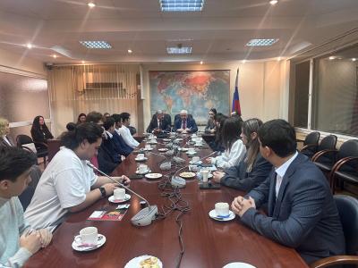 В Государственной Думе состоялась встреча Л.И. Калашникова, Д.Г. Новикова и К.К. Тайсаева со студентами Ташкентского филиала МГИМО, в ходе которой обсуждались вопросы международного сотрудничества, роли молодежи в развитии СНГ и укрепления дружбы между народами.