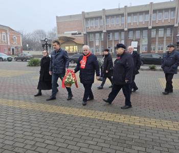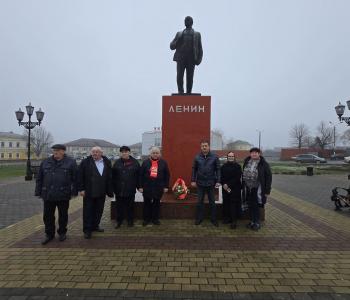 Делегация возложила цветы к подножию памятника основателю Советского государства В.И. Ленину. Данный памятник восстановлен силами местных коммунистов.