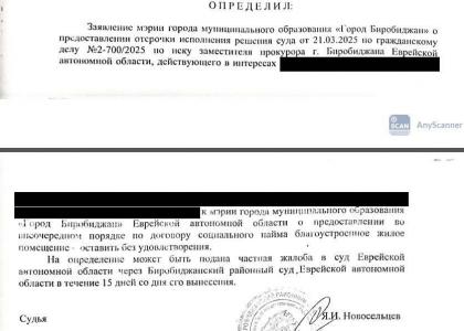 Мэрия Биробиджана проиграла суд, пытаясь на законных основаниях добиться пятилетней отсрочки в предоставлении жилья семье участника СВО. Биробиджанский районный суд отказал чиновникам в удовлетворении их заявления.