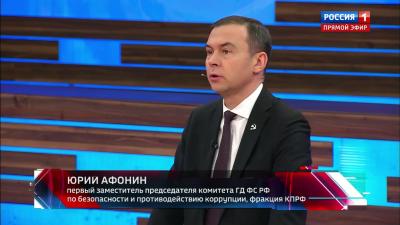 Первый заместитель Председателя ЦК КПРФ Ю. В. Афонин выступил в программе «60 минут» на телеканале «Россия-1». В студии обсуждались визит президента Путина в Индию, ход переговоров об урегулировании российско-украинского конфликта и ряд других вопросов международной повестки.