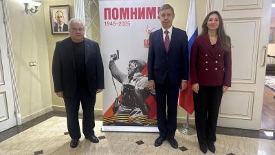 К.К. Тайсаев: «Разрешите передать вам слова искреннего приветствия от Председателя Государственной Думы Российской Федерации Вячеслава Викторовича Володина, лидера Коммунистической партии Российской Федерации, Председателя Центрального комитета Геннадия Андреевича Зюганова, а также от Леонида Ивановича Калашникова, Председателя Комитета Государственной Думы по делам Содружества Независимых Государств и связям с соотечественниками.