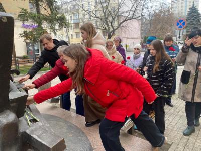 На Площади Победы гостей встретили Первый секретарь Воронежского обкома КПРФ Андрей Рогатнев и второй секретарь Денис Рослик. Все вместе дети и взрослые отдали дань памяти воинам Красной армии, освобождавшим Воронеж от фашистов, возложили красные гвоздики к Мемориалу на Площади Победы.