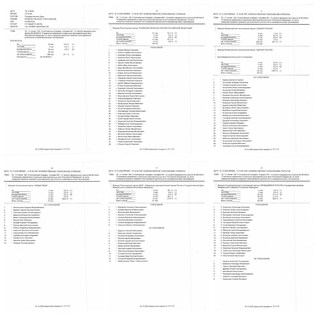 А почти вся "Единая Россия" и их сателлиты из "Новых людей" бойкотировали голосование по поправке КПРФ о запрете МФО.