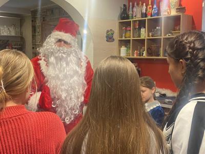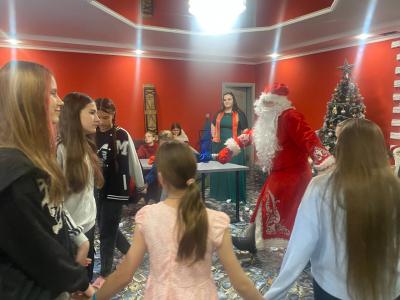 Вместе с Дедом Морозом ребята хором просили: «Раз, два, три, ёлочка, гори!», разгадывали коварные загадки, водили хоровод, а младшие у Деда Мороза на коленях читали стихи. А когда в дом ворвался злой Бармалей и попытался украсть и подарки, и сам праздник, дети дружно забросали его бумажными «снежками».