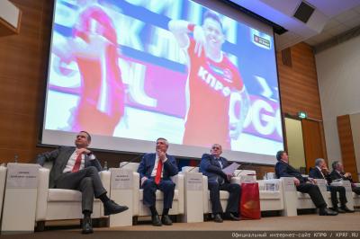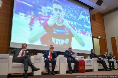 Победный дух демонстрируют спортсмены КПРФ, они завершили 2025 год с большими достижениями. Спортивные победы продемонстрировали и футболисты, и шахматисты, и наши волейболисты. На большом экране был продемонстрирован видеоролик об очередной победе в спорте футболистов КПРФ. От достижений в спорте – к победе на выборах!