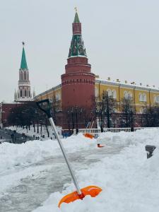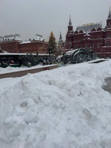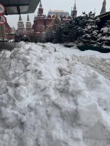 Манежная площадь, Александровский сад, подходы к Кремлю и Красной площади остаются заваленными снегом.