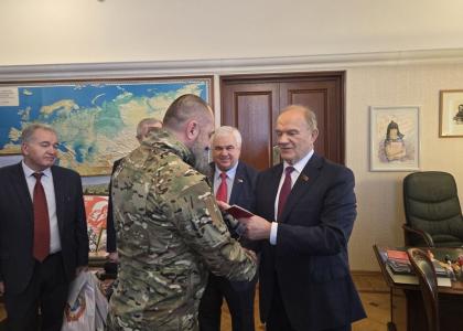 Затем в стенах Государственной Думы РФ прошла важная и символичная встреча лидера КПРФ Геннадия Зюганова и руководителя Общероссийского штаба протестных действий, заместителя Председателя ЦК КПРФ Владимира Кашина с командирами добровольческих подразделений «Русь» Бордюжа Роланди Роландовичем и «Буран» Денисенко Артемом Сергеевичем, прибывшими непосредственно с зоны проведения специальной военной операции.