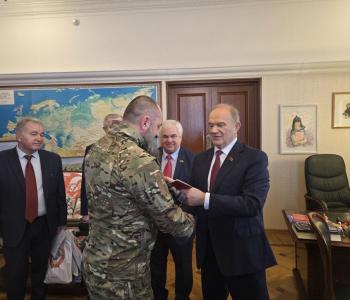 Затем в стенах Государственной Думы РФ прошла важная и символичная встреча лидера КПРФ Геннадия Зюганова и руководителя Общероссийского штаба протестных действий, заместителя Председателя ЦК КПРФ Владимира Кашина с командирами добровольческих подразделений «Русь» Бордюжа Роланди Роландовичем и «Буран» Денисенко Артемом Сергеевичем, прибывшими непосредственно с зоны проведения специальной военной операции.
