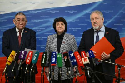 28 января, предваряя пленарное заседание Госдумы, перед журналистами выступили депутаты фракции КПРФ С.П. Обухов, А.Е. Глазкова, П.Р. Аммосов.