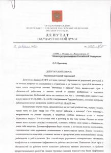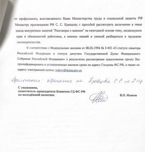 В связи с чем был направлен депутатский запрос министру просвещения с просьбой включить тему о трудовых правах в цикл внеурочных занятий «Разговоры о важном» для школьников на ежегодной основе. А также министру труда с просьбой поддержать данную инициативу, как профильному ведомству.