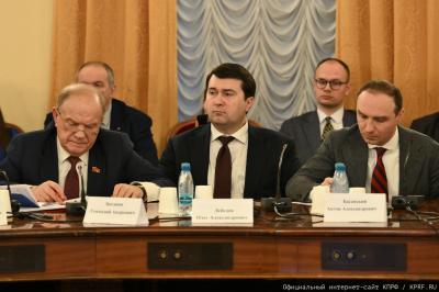 16 февраля КПРФ провела в Москве, в Доме Союзов, круглый стол на тему: «Законодательное регулирование и правоприменение в сфере недропользования». Открыл заседание Председатель ЦК КПРФ, Руководитель фракции КПРФ в Госдуме Г.А. Зюганов. Вел заседание первый заместитель Руководителя фракции КПРФ в Госдуме Н.В. Коломейцев. С основными докладами выступили заместитель председателя комитета ГД по экологии, природным ресурсам и охране окружающей среды О.А. Лебедев и Руководитель Федерального агентства по недропользованию О.В. Казанов.