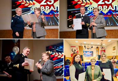 В этот раз курсанты колледжа подготовили концерт, посвящённый Дню защитника Отечества. Выступила с поздравлением и вручила от себя, как депутата Государственной Думы, благодарственные письма начальнику колледжа Карпович С. М., руководителям подразделений, заведующей Историко-культурного центра морского образования со словами признательности за огромную работу по патриотическому воспитанию учащихся, сохранение исторической памяти о подвигах защитников Отечества всех поколений.