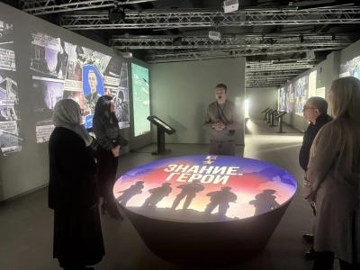 Во второй половине дня делегация посетила мультимедийный исторический парк «Россия — моя история» в Луганске. Директор парка Борис Портной лично провел для гостей экскурсию по выставке «Знание.Герои».