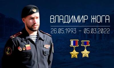 В тот же день глава ДНР Денис Пушилин присвоил Владимиру Жоге звание Героя Донецкой Народной Республики посмертно. А 6 марта 2022 года Президент России Владимир Путин подписал указ о присвоении ему звания Героя Российской Федерации (посмертно) . Владимир Жога стал первым военнослужащим ДНР, удостоенным этого высокого звания .