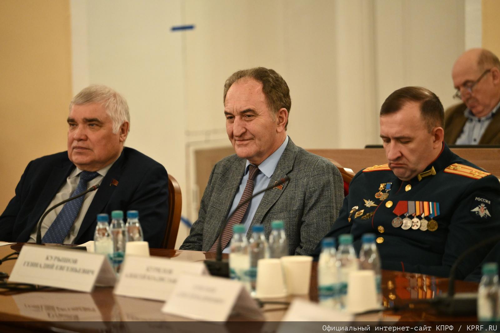 23 марта фракция КПРФ в Госдуме провела круглый стол в Доме Союзов на тему: «Стратегия национальной безопасности – основа развития России». Открыл круглый стол член комитета Госдумы по обороне, генерал-лейтенант В.И. Соболев. Он же был модератором круглого стола.