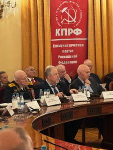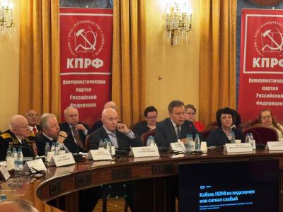 В Государственной Думе, в «Овальном» зале Дома Союзов, состоялся «круглый стол», организованный фракцией КПРФ, — «Стратегия национальной безопасности — основа развития России», в котором приняли участие представители военной науки, ветераны Вооруженных сил, эксперты из военных академий, структур Академии наук, а также представители депутатского корпуса разного уровня.