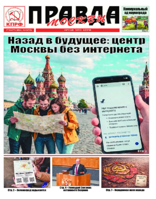 17 марта 2026 года вышел 10-ый (721-ый) выпуск газеты МГК КПРФ “Правда Москвы”. В нём напечатан материал об оценке социально-экономической обстановки в России, данной председателем ЦК КПРФ, руководителем фракции коммунистов в Государственной Думе Г.А. Зюгановым в ходе его выступления на пленарном заседании нижней палаты Федерального собрания. Напечатан статья депутата Государственной Думы, секретаря МГК КПРФ Д.А. Парфенова о подчинении городской политики интересам крупного бизнеса. Затрагивается тема проблем в ЖКХ и перспектив их решения (в том числе на примере обсуждения в ходе проведенного руководителем фракции КПРФ в Московской городской Думе Н.Г. Зубрилиным круглого стола по теме состояния жилищно-коммунальной инфраструктуры в Троицке). Освещается проведённый Николаем Зубрилиным круглый стол по теме проблем таксомоторной отрасли. Не обойдена стороной тема автокредитов. Проиллюстрированы тенденции в области образования. Упомянуто о перебоях в работе интернета. Размещена статья о 35-летии всесоюзного референдума о сохранении СССР.