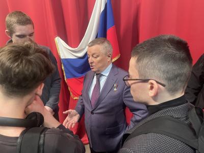 Диалог с молодым поколением получился открытым и искренним. Никто не хотел расходиться. Отвечая ребятам на их многочисленные вопросы, Герои подчеркнули: настоящая сила – в профессионализме, мужестве и верности Родине. И пожелали юношам и девушкам любить свою профессию и стремиться к большему. Ведь Героем становится тот, кто лучше всех делает своё дело!