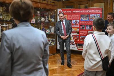 В Государственной Думе делегацию принял первый заместитель Председателя ЦК КПРФ Юрий Афонин. Он подробно рассказал о деятельности фракции, её исторических традициях и современной работе, направленной на защиту интересов граждан, развитие страны и поддержку семей защитников Отечества. Особое внимание было уделено вопросам патриотического воспитания молодёжи, сохранения преемственности поколений и исторической правды.