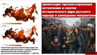 Более подробно остановлюсь на таком факторе общественно-политической дестабилизации как реальная угроза народозамещения, глубокая демографическая эрозия нашего государства, разрушение культурной основы России и государствообразующего русского народа как последствия безответственной миграционной политики.