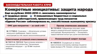 КПРФ будет продолжать эту борьбу. Мы будем добиваться визового режима, квотной системы и реальной ответственности капитала за миграционный беспредел.