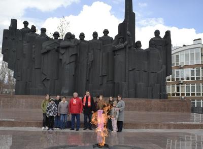 Затем путь гостей лежал на площадь Победы, где их ждали руководители Воронежского обкома КПРФ - первый секретарь Андрей Рогатнев и второй секретарь Денис Рослик. Вместе с гостями они возложили алые гвоздики к Вечному огню и к памятной стеле погибшим детям Донбасса.