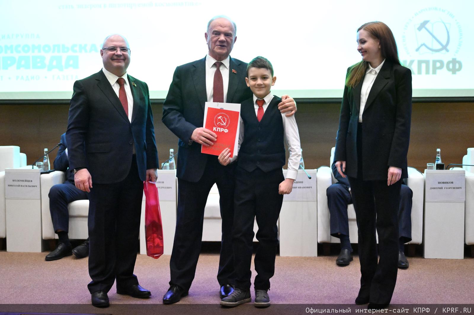 На заседании фракции состоялась церемония награждения победителей Всероссийского конкурса детских рисунков и сочинений «Первому полету в Космос 65 лет!». С приветственным словом выступил лидер КПРФ Г.А. Зюганов, он рассказал, что в конкурсе приняли участие представители из 75 регионов и 11 зарубежных государств, жюри отбирало лучшие работы из 9985 рисунков и 895 сочинений. Геннадий Андреевич пригласил победителей конкурса на большую пионерскую линейку на Красной площади, которую КПРФ проведет в День Пионерии. Лучшие рисунки будут предствлены на выставке, которую КПРФ откроет в помещении своей фракции в Госдуме.