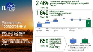 Хочу выразить благодарность Министерству сельского хозяйства за то, что Госпрограмма работает и движется вперёд. В севооборот уже вовлечено около 3 миллионов гектаров, а к 2030 году планируется увеличить этот показатель до 10 миллионов гектаров. Задания распределены по регионам. Долгие годы мы шли к этому, создана почвенная карта, проведено межевание.