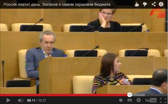 На аккауте КПРФ.ТВ в youtube.com размещен репортаж о выступлении лидера народно-патриотической оппозиции Г.А.Зюганова в Госдуме при рассмотрении бюджета на 2013 год. "Россия платит дань. Зюганов о самом паршивом бюджете" - так называется видеоматериал КПРФ.РУ.