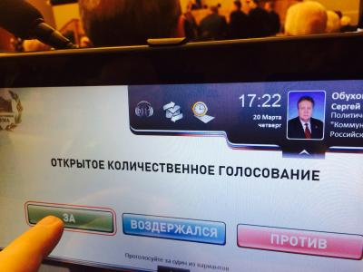 Мы будем голосовать «За», прежде всего потому, что идет процесс воссоединения с исторической родиной Крыма и Севастополя. КПРФ - партия народа и для народа, и для нас демократическое волеизъявление на референдуме, в котором участвовало практически все население Крыма, является высшей волей. И мы обязаны ее узаконить здесь, в нашем Федеральном Собрании.