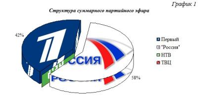 Всего освещение федеральным телевидением Пресс-конференции 8 сентября заняло 4 минуты 13 секунд эфирного времени. Распределение времени по телеканалам отражено на Графике 1.