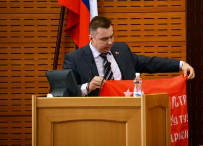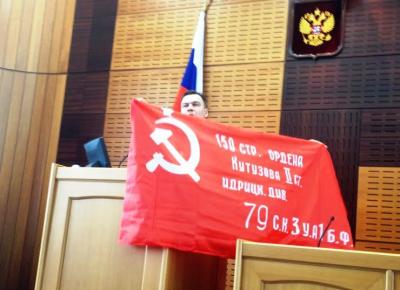 Выступая с трибуны в зале заседаний, Роман Александрович развернул копию легендарного штурмового флага. Депутаты поддержали законопроект в первом чтении почти единогласно. Если закон будет принят окончательно, копия Знамени Победы должна будет обязательно устанавливаться рядом с Государственным флагом Российской Федерации. Также красные знамена будут использоваться на торжественных мероприятиях. А при выносе знамени, Знамя Победы обязаны будут выносить первым. Напомним, Знаменем Победы считается штурмовой флаг 150-й ордена Кутузова II степени Идрицкой стрелковой дивизии, водруженный 1 мая 1945 года на здании рейхстага в городе Берлине.
