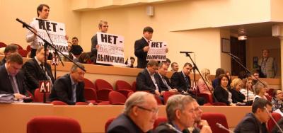 Перед началом заседания гордумы возле здания областной думы состоялся одиночный пикет первого секретаря горкома КПРФ Александра Юрьевича Анидалова, который протестовал с плакатами: «Нет – бюджету вымирания!» и «Депутат, думай о народе, и желательно головой!». Аналогичные плакаты были развернуты активистами КПРФ и в зале на заседании гордумы.