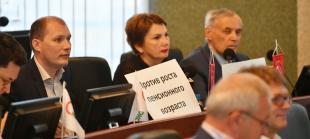 Депутаты-коммунисты пришли на сегодняшнее заседание Заксобрания Карелии с плакатами против повышения пенсионного возраста и с требованием отправить в отставку правительство Дмитрия Медведева.