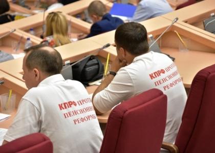 надпись: «КПРФ против пенсионной реформы», но и ещё раз