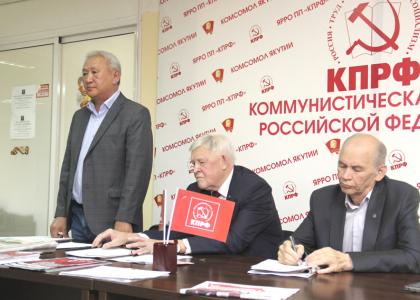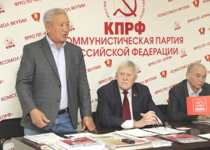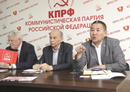 На днях в здании Якутского рескома КПРФ состоялась пресс-конференция коммунистов против пенсионной реформы. Лидер коммунистов Якутии Виктор Губарев, открывая ее, представил участников пресс-конференции: серебряного призера Олимпийских игр Александра ИВАНОВА, видного общественного деятеля Михаила Санникова, руководителя совета Якутской республиканской организации общероссийского общественного движения «Дети войны» Иннокентия Васильева, председателя профсоюзного комитета авиаработников республики Владимира Петрова и секретаря Якутского рескома КПРФ по идеологии Петра Аммосова.