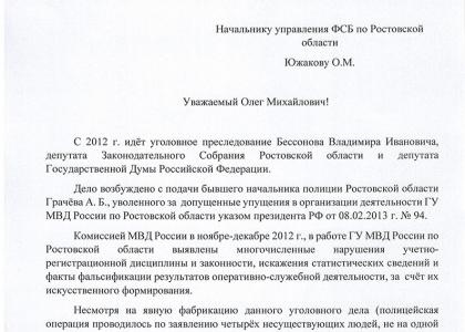 Дело возбуждено с подачи бывшего начальника полиции Ростовской области Грачёва А.Б., уволенного за допущенные упущения в организации деятельности ГУ МВД России по Ростовской области указом президента РФ от 08.02.2013 г. № 94.