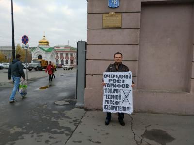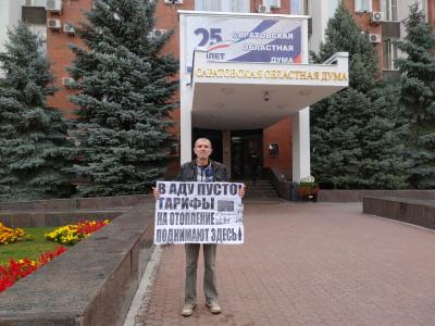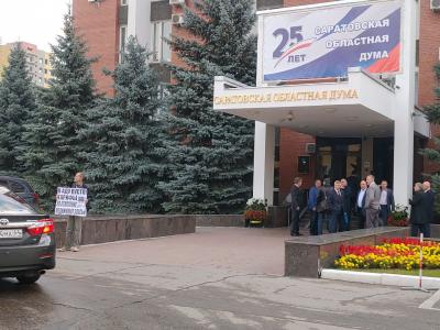 24 октября перед началом очередного заседания Саратовской городской думы активисты КПРФ провели серию одиночных пикетов против повышения тарифов на коммунальные услуги.