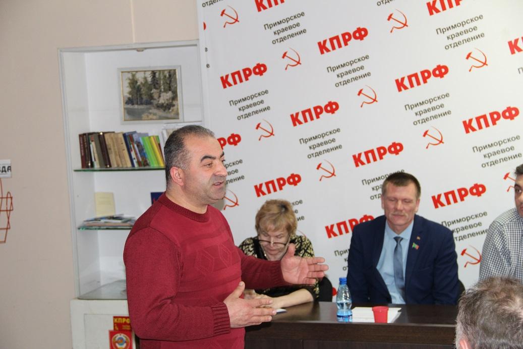 Со вступительным словом выступил первый секретарь краевого Комитета А.Н. Долгачев. Он рассказал о консолидации и совместной, слаженной работе депутатов всех уровней, представляющих Коммунистическую партию Российской Федерации. Также выступили второй секретарь Комитета ПКО КПРФ Е.И. Ляшенко, депутат А.А. Самсонов, которые поделились опытом работы в Законодательном Собрании ПК и в Думе города Владивостока.