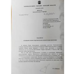 Депутаты Амурского Законодательного собрания написали ходатайство о поручительстве в Следственный Комитет России за депутата Законодательного Собрания Иркутской области Андрея Левченко.