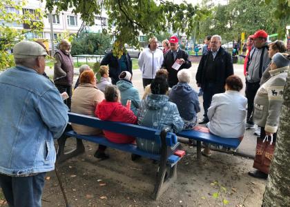 Александр Наумов на встрече с жителями рассказал об основных положениях программы КПРФ. Он отметил, что по многим направлениям, касающимся каждого человека, в России демонстрируется провальная политика: «В тяжёлом положении оказалась медицина, например, за последние 20 лет были закрыты более половины подмосковных больниц. Проводится антинародная пенсионная реформа. Нарастает инфляция, что ведёт к обесцениванию пенсий. Пенсионерам выдают сейчас единовременно по 10000 рублей, но при этом не упоминают о том, что из-за отсутствия индексации пенсий каждый из них потерял более 14000. Коммунисты говорят о том, что минимальная пенсия, а также МРОТ должны составлять не менее 25000. Трудоспособные жители области погрязли в долгах. Рабочих мест нет, более 1,5 млн человек вынуждены ездить на работу в Москву. Коммунисты предлагают бюджет развития в интересах народа, ведь уже сейчас есть все возможности увеличить его с 21 до 33 трлн рублей. Для этого необходимо прекратить вывод денег в офшоры, ввести прогрессивную шкалу налогообложения. Олигархи сказали президенту, что для разработки системы безопасности газоснабжения нужно 300 млрд рублей. Вчера я был в Протвино у газовщиков и видел разработанную ими систему безопасного газоснабжения, которая уже внедрена и успешно функционирует. Почему эту разработку не внедряют по всей стране? КПРФ призывает власть обратить внимание на нужды каждого гражданина, гарантировать качественное и бесплатное образование и медицину, отменить повышение пенсионного возраста, принять закон «О детях войны» и вернуть долг поколению пережившему войну и много сделавшему для восстановления и развития нашей страны».