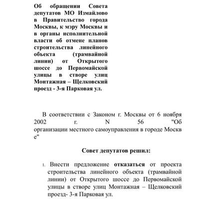 Правда, шла борьба за уточнение формулировок в мотивирующей части решения. Но самое главное: общественность, жители добились, что их позиция поддержана советом депутатов района Измайлово.