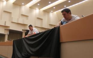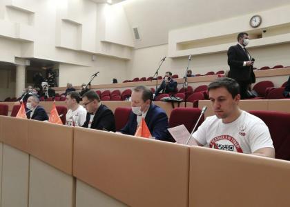 На улице перед зданием облдумы коммунисты растянули плакаты: «НЕТ – бюджету вымирания», «КПРФ против обязательной вакцинации», «Скажи QR-кодам – НЕТ». В зал заседаний депутаты фракции КПРФ пришли в майках с трафаретами: «Я – человек, а не товар! Скажи QR-кодам – НЕТ!» Во время обсуждения регионального бюджета коммунисты вывесили траурное полотно рядом со своими рабочими местами.